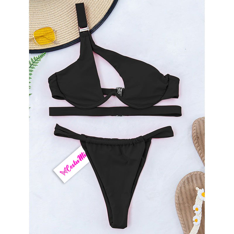 Bikini with underwire and diagonal strap